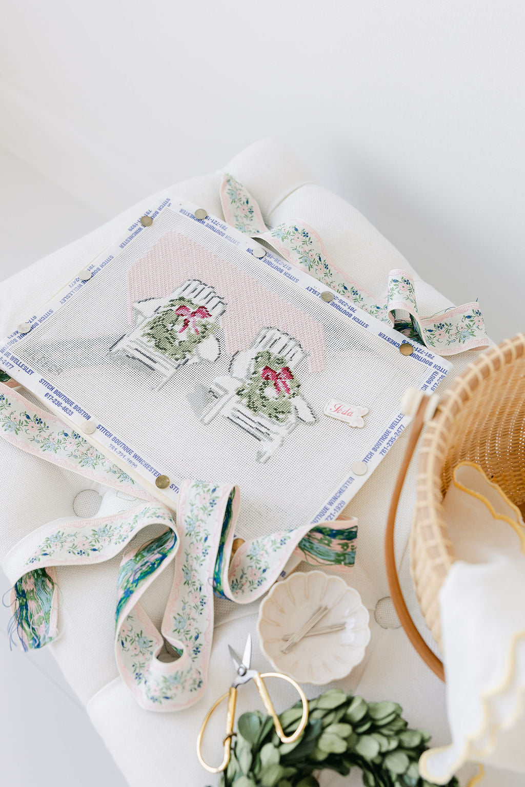 Needlepoint Canvas: Adirondack Chairs With Wreath
